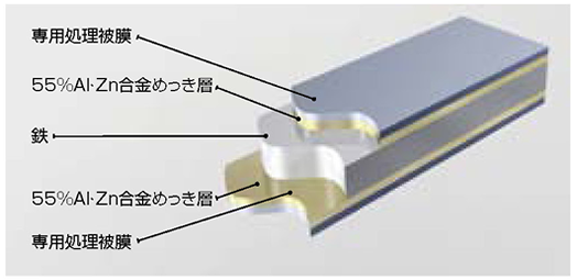 遮熱性能を備えたガルバリウム鋼板を採用。